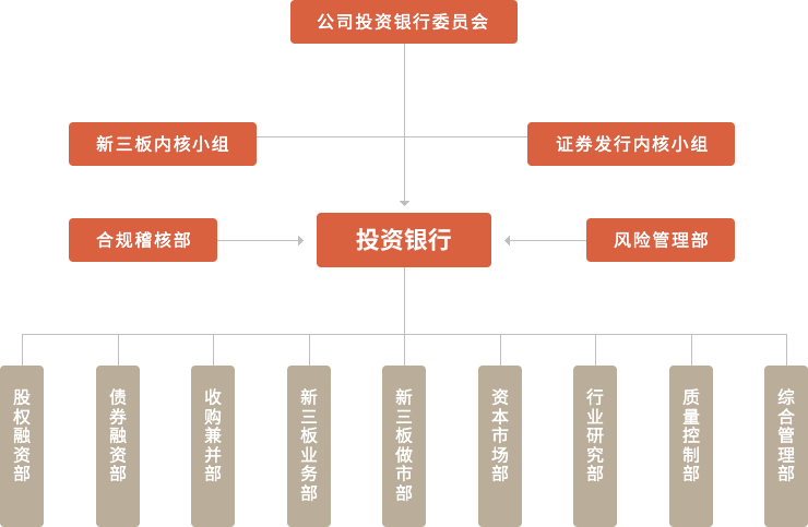投资银行业务是万和证券树立品牌的核心业务。万和证券投资银行的定位是以市场化业务为导向,以债券、新三板业务为中心,大力发展IPO及其他投行业务。万和证券投资银行立足于服务股东优势,深耕股东和深圳国资体系内的业务;基于全业务链服务优势,投资银行以新三板为基础开展挂牌、做市和融资等各项业务,并从中孵化潜在的IPO项目和并购重组项目,在资源共享、业务协调的基础上逐步推进大投行模式;同时,深入研究资本市场改革可能带来的市场化发行产生的股票销售环节的业务机会,组建一个完善的销售团队,使承销能力成为投资银行的一个显著特色。